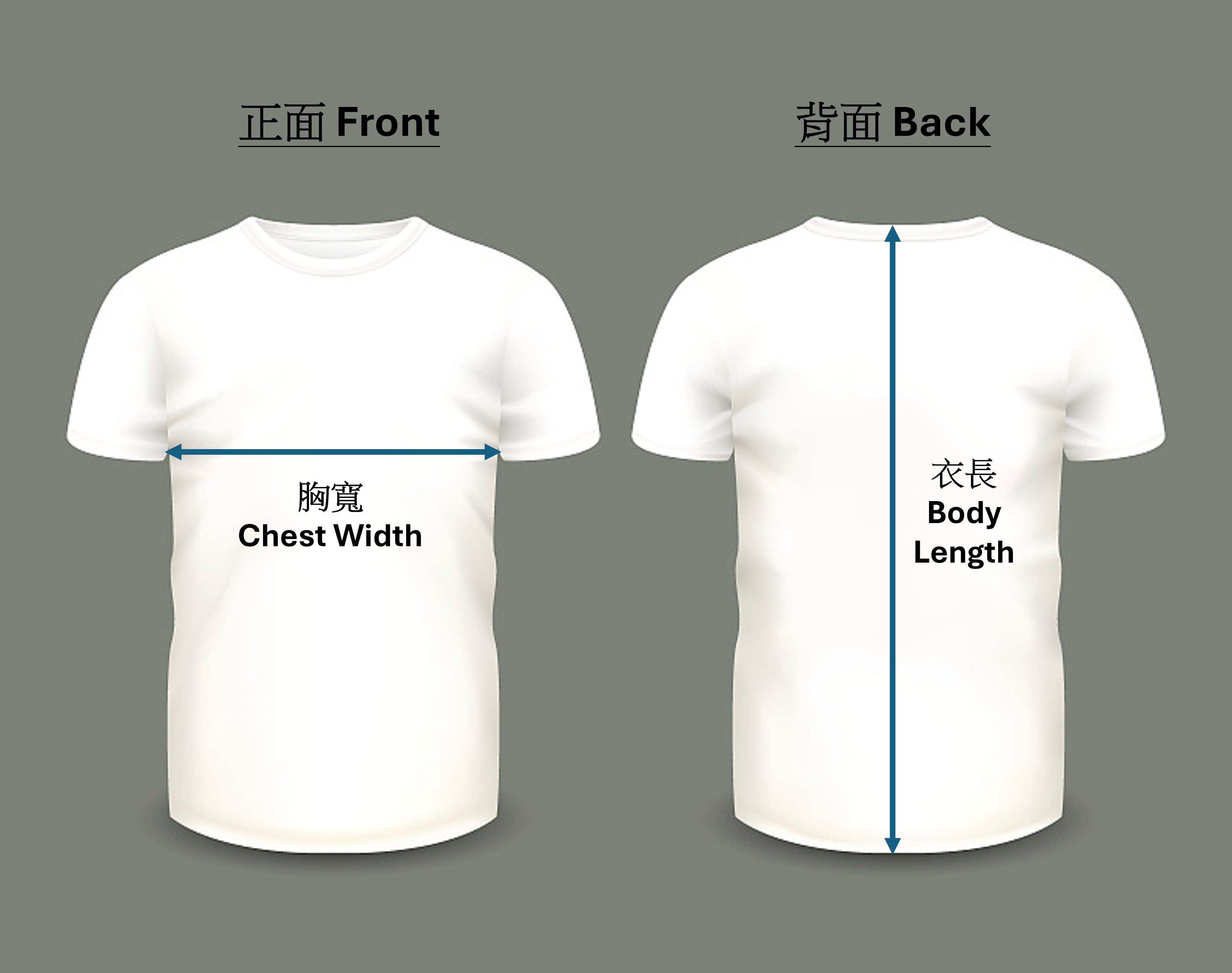 成人短袖T-SHIRT尺寸 (實物尺寸與碼表會有3%手工偏差)